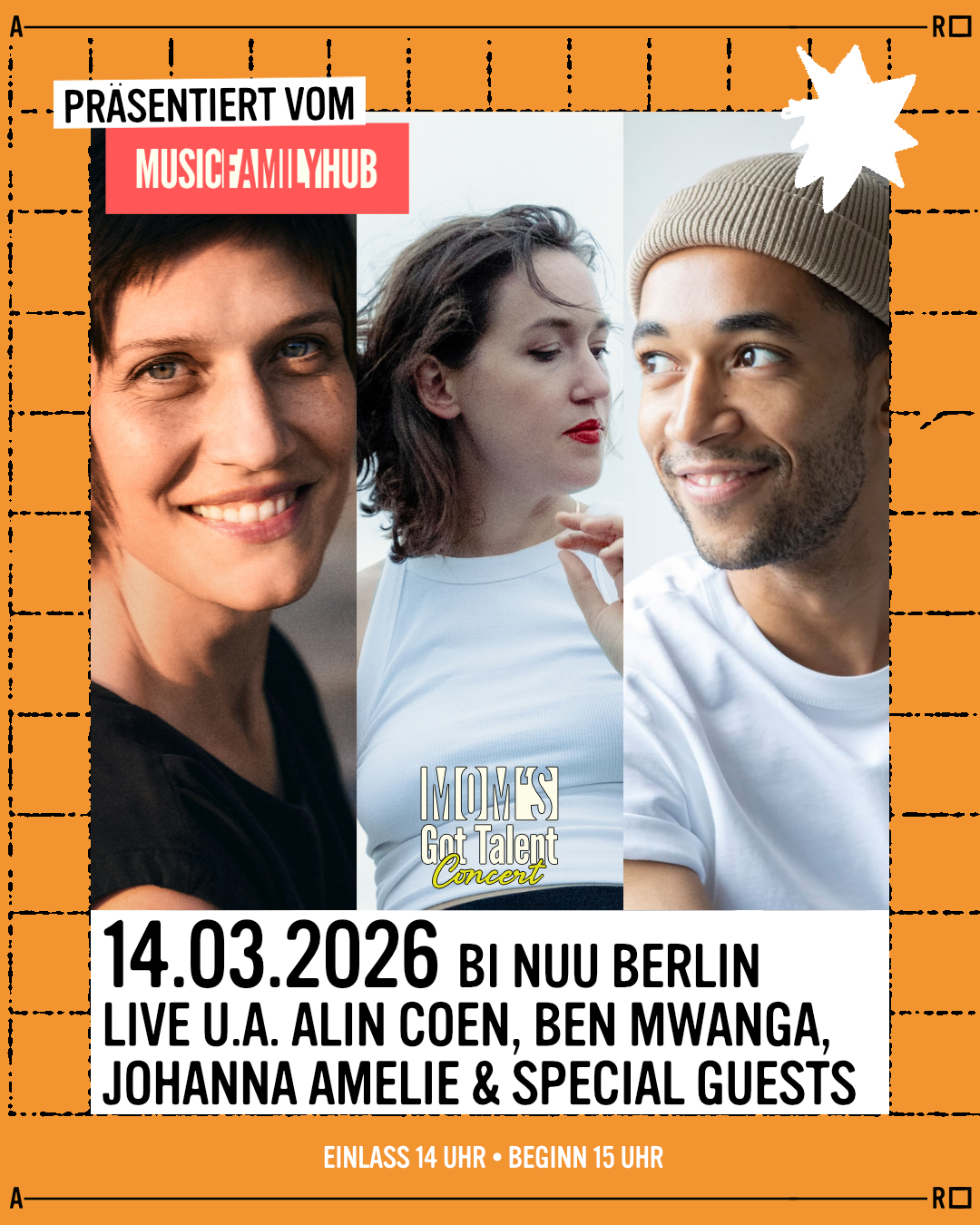 mit ALIN COEN, BEN MWANGA (Benito Bause) und JOHANNA AMELIE – live! ?+ Special Guests: Mom’s Got Talent Academy